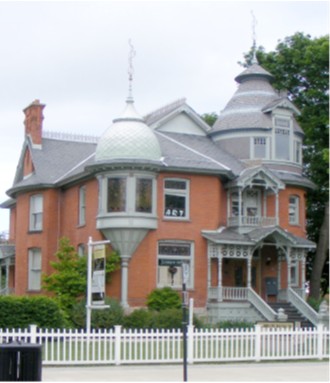 Lumber baron, William F. Lawrence built this Queen Anne style house in 1892 at a cost of $30,000. This building is an interesting example of high Victorian eclectic architecture which stands on the north-west corner of Wellington and Christina Streets in Sarnia. It was built in 1892 by W. F. Lawrence and served as the family home until the death of his widow in 1940 and remained in the family ownership until 1977, when Carroll H. Lawrence, a grandson of the original builder, presented this house to the City to be restored and maintained for the beneficial use of the citizens of Sarnia, to stand as a memorial to a family which has played a substantial role in the developing of Canada and the City-of Sarnia.