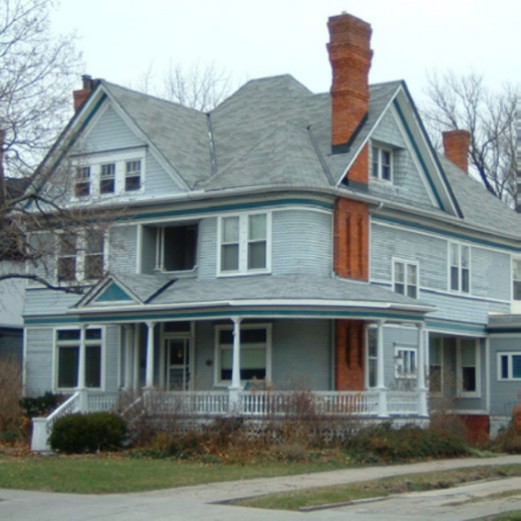 This house, which was built in 1883, remains unaltered from its original construction and it retains its original character and design materials. Special attention was made to the detail seen in the decorative wood in the right gable end, the wood brackets under the roof of the right bay window, the brick label shaped voussoir head trim and the smaller façade gable with the door in it.