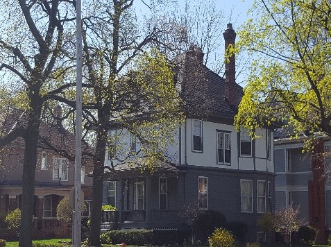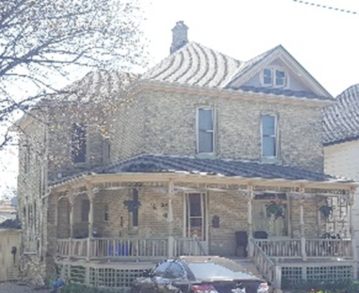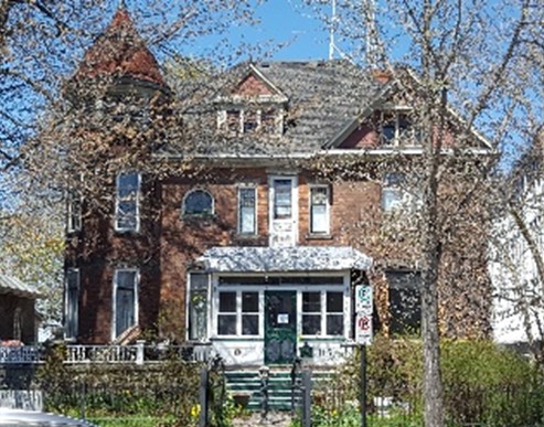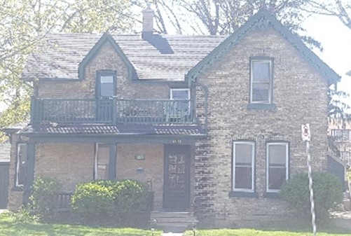 The front facade of this dwelling is a good example of Canadian Vernacular Architecture. The circular verandah at the front of the dwelling is an original example of Victorian detailing. The upper gable displays scallop cedar shingles, and the facade is constructed of local yellow clay brick. The mantle piece and the cast brass fireplace within the dwelling are original and worthy of designation. Research has traced the dwelling to the late 1890’s. The dwelling was used as the manse for the Central Baptist Church from 1912 to 1957. It is believed that the home may have been constructed for George Durand a former City Mayor.
